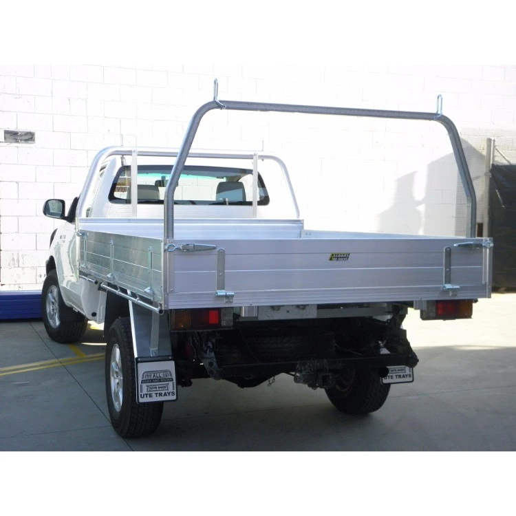A budget universal single rear ute rack to suit 1760 (internal) wide flat tray ute. This is a universal single bar that requires drilling and bolting to the floor of the ute tray. The height of the bar is 950mm but should be cut down to suit the headboard of the ute tray when fitting. Single bar is supplied with universal pins for mount to flat style headboards. These universal bars have been load rated to 100kg and are marked on the bar with a label.
