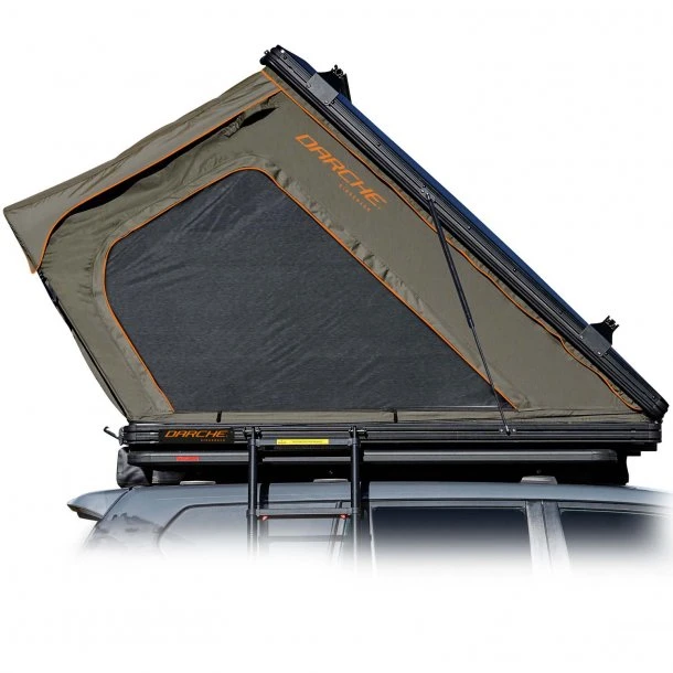 The Ridgeback body tent is made from premium 280gsm ripstop polycotton canvas. This tent has an impressive 3000mm water rating, high profile automotive rubber weather seals, internal seam sealing and a removable fly that will keep you dry in extended rainy conditions With roof rails accessory kits available (sold separately), the Ridgeback delivers everything you’ll ever need in a hard shell roof top tent and more. The included mounting brackets suit most commercially available flat roof rack or roof rail systems. Make sure to check the weight rating and suitability of your roof rack and vehicle with appropriate manufacturers prior to purchase. We recommend professional installation through your local 4WD centre or ask your DARCHE dealer for advice about installation.