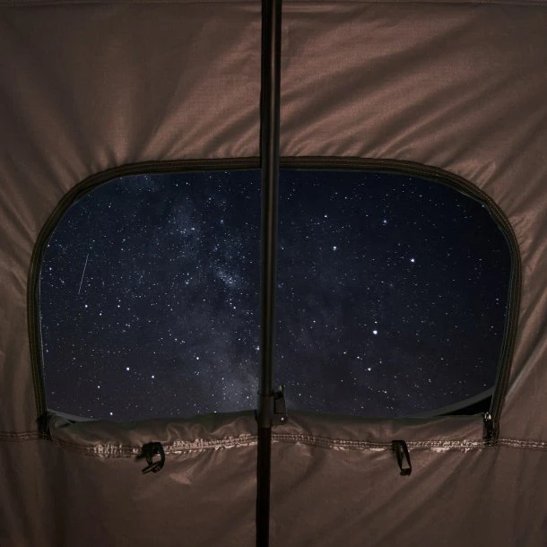There is plenty of room inside to keep you cool and comfortable. The removable fly and built-in air vents reduce condensation and provide excellent airflow, even in rainy weather. There are three full size entry points and a zippered sky window that will give you plenty of ventilation as you drift off under the starry night sky.