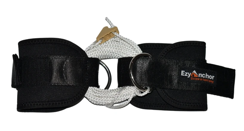 4mm VB chord attached to two Velcro Straps with Dās and a rope cleat for tightening the line when in position.