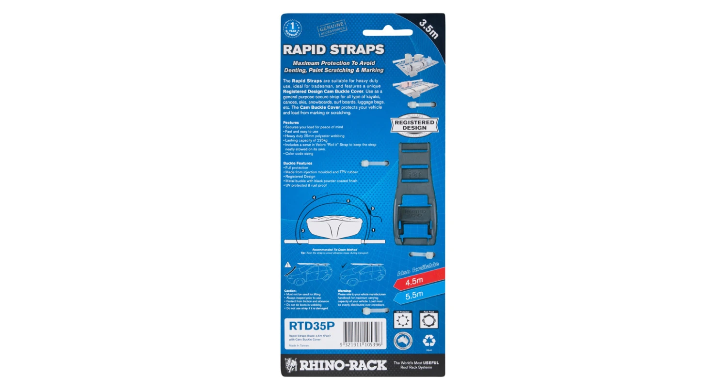 Rhino Rack 3.5m Rapid Straps w/ Buckle Protector RTD35P