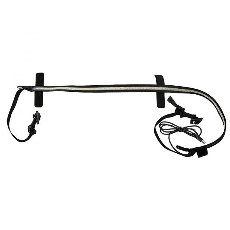 Make your base camp shine with the SunBelt light strip for your SkyRise tent. Mount it inside or outside your SkyRise, or just about anywhere around camp. The flexible LED strip has a fabric sleeve with adjustable straps for easy attachment. The SunBelt is bright but not glaring – perfect for finding your way without losing sight of the stars. The integrated 90 cm USB cable can be powered with any 5 volt USB power source (not included).